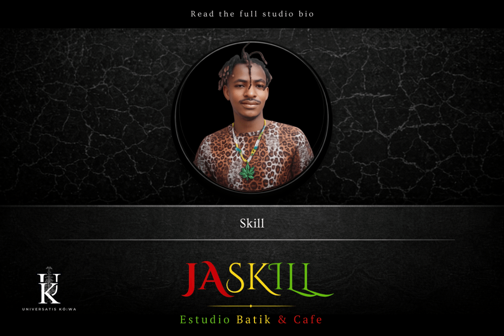 Skill (JASKILL Batik Studio Cafe) is a Mozambican artist working between batik, music, and cultural memory—one language expressed through cloth and sound.